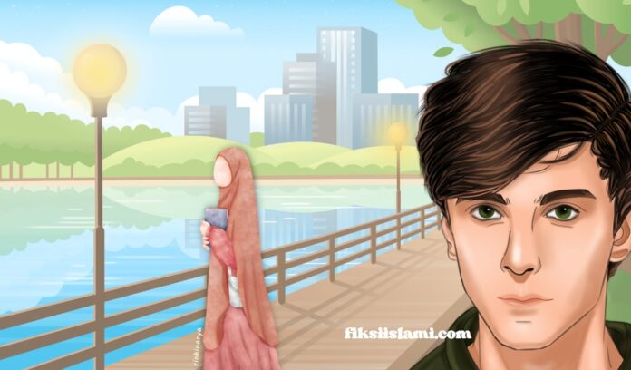 Itu dia! Dia melambaikan tangan ke arahku? Tidak, aku tidak boleh percaya diri. Menatapku saja bahkan dia tak mampu. Aku menoleh ke belakang. Oh, Allah… Seorang laki-laki. Tersenyum kepadanya? Dadaku sesak. Kuharap aku masih mampu berdiri tegak menatap kepergiannya atau bahkan memergoki senyumnya terakhir kali? Dia bahkan menampakkan gigi seri dan mengulurkan tangannya untuk menyalami laki-laki itu. Aku pergi.